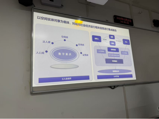 互动研讨促成长:移动课堂实现教学相长。本次移动课堂采用 “边讲边讨论” 的形式,现场氛围轻松而热烈。高翔所长结合自身参与重庆市时空大数据平台、综合市情系统研发的实战经验,耐心解答了师生提出的 “五库融合具体实施难点”“时空数据与数字贸易结合路径”“大模型训练时空数据的关键环节” 等问题。