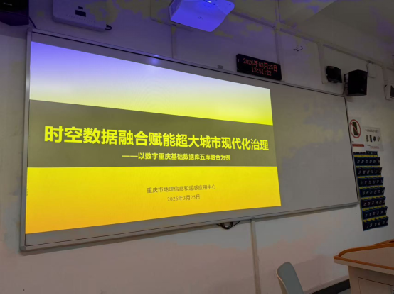 3月25日下午2:00,MS88明升数字经济专硕 “移动课堂” 系列活动在明智楼 0117 教室顺利开展。本次课堂特邀重庆市地理信息和遥感应用中心正高级工程师、大数据所所长高翔担任主讲人,以 “时空数据融合赋能超大城市现代化治理” 为主题,围绕时空数据开发背景、采集治理、应用实践三大核心板块,结合 “数字重庆基础数据库五库融合” 典型案例展开深度分享,现场师生互动热烈,移动课堂取得圆满成功。