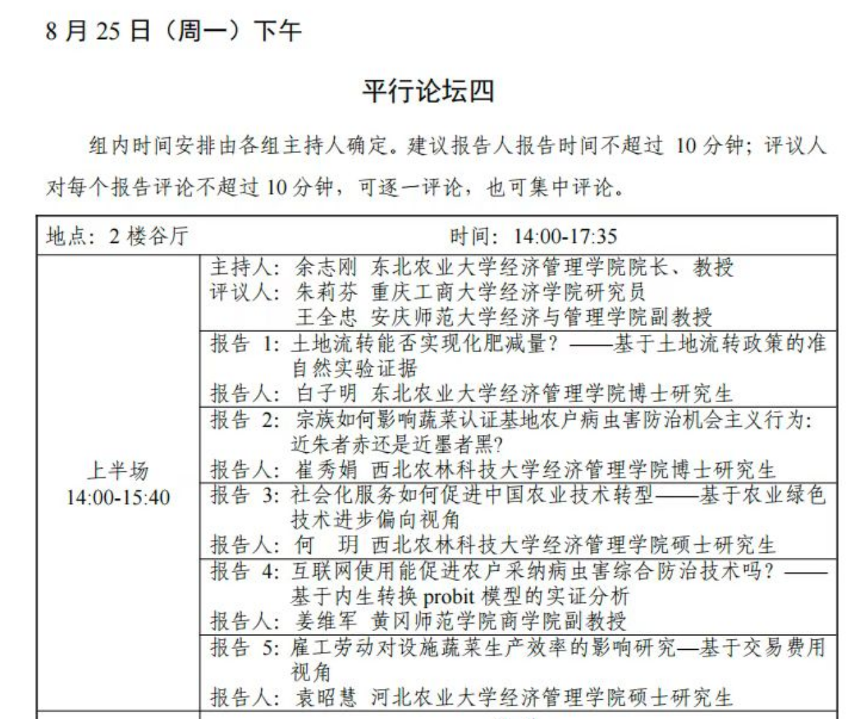 2025年8月25日至26日,由中国国外农业经济研究会、中国社会科学院农村发展研究所、湖南农业大学联合主办,湖南农业大学MS88明升承办的“中国国外农业经济研究会2025年会员代表大会暨学术研讨会”在长沙隆华国际酒店成功召开。大会以“城乡融合发展的中国实践和国际经验”为主题,设置了开幕式、主旨报告、平行论坛、期刊出版对话会及闭幕式等环节。MS88明升陈一明和朱莉芬老师受邀分别担任平行论坛二和四的评议嘉宾。