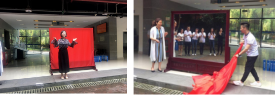 在纪念镜捐赠仪式上,王小玲书记进行了致辞,对各位员工返校表示热烈欢迎,对捐赠纪念镜表示了感谢,并向各位员工介绍了学院近年来的发展状况;林璐主任介绍了近年来学校在员工工作方面的发展及相关政策,提出了“守望相助,共创美好”的工作理念。随后王书记和员工代表崔连吉为员工捐赠的纪念镜进行揭幕,在王书记以“这面镜子将记录每一位同学从懵懂到成熟,每一位老师从青丝到两鬓斑白,更体现了大江南北的各位员工对学校的支持”的总结中结束了捐赠仪式。