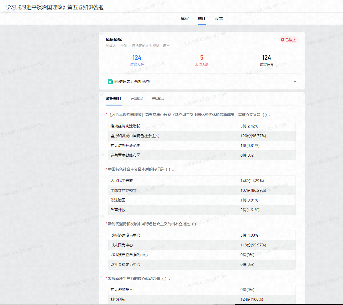 活动内容紧扣《习近平谈治国理政》第五卷的核心要义、精神实质和丰富内涵,涵盖了中国特色社会主义进入新时代的历史性成就与变革、中国式现代化道路、高质量发展、全过程人民民主、文化建设、民生保障、生态文明建设、全面从严治党等一系列重大主题。教职工们利用工作间隙,认真学习,仔细答题,展现了学院教师队伍严谨治学、积极向上的精神风貌。
