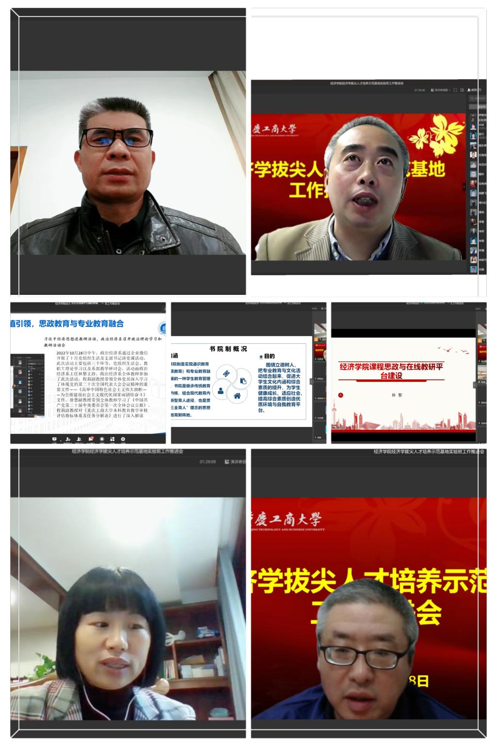 政治经济学系主任林黎汇报了课程思政与在线教研平台建设进展,演示了信息展示、模块库、教研活动、课程建设、成果管理、员工思政等模块功能,突出了本课程思政网站的思政属性、学科属性、教研属性、育人属性、宣传属性。车四方博士汇报了实验经济学实验室建设项目推进情况,对项目教学支撑、科研支撑、服务支撑、展示支撑等四个支撑功能进行阐释。副书记白海龙从书院制概况、管理模式、场地设置、问题探讨四个维度汇报了书院制建设进展。