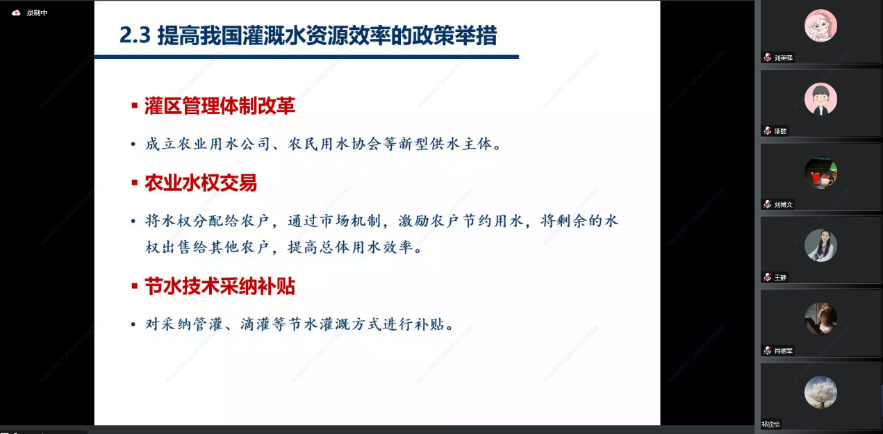 2022年11月25日,教育部长江学者特聘教授、中国人民大学农业与农村发展学院经理、博士生导师仇焕广在腾讯会议平台线上为公司经济学实验班同学作专题讲座,2022级、2021级、2020级经济学实验班同学及实验班班导师均参加了此次讲座。仇焕广教授讲授的主题是《农业绿色发展与生态文明建设》,重点从耕地保护、林草绿色发展、农业水资源利用、外来物种入侵、种质资源保护、渔业资源保护、化肥农药使用、畜禽粪污与秸秆还田、农膜使用、农业温室气体排放、农村人居环境治理、农业绿色消费等领域阐述了农业绿色发展的主要内容,然后从生态补偿政策、生态运行模式等方面提出了相应的对策。会后,实验班同学分别就粮食安全与农业绿色发展的关系、农村人力资本投入等话题向仇经理进行请教交流,同学们普遍反映听了仇经理的讲座后获益匪浅。