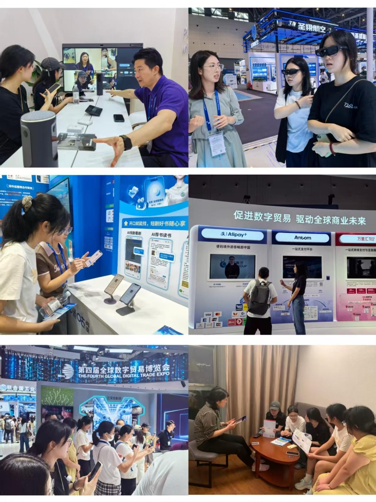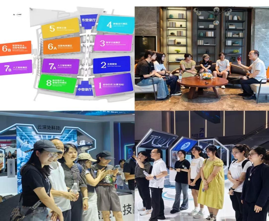 公司数字贸易实践团师生首先开展了全球数字贸易博览会实践学习。全球数字贸易博览会是我国国内唯一一个以数字贸易为主题的国家级、国际性、专业型展会,由浙江省人民政府和中华人民共和国商务部共同主办的国家级专业展会。本届数贸会以“在数贸会看见创新未来”为主题,吸引了154个国家和地区的1800多家企业参展。数贸会总展览面积达15.5万平方米,共设置“1+7”展区:1个数贸主题展馆和人工智能、丝路电商、数智出行、数字文娱、数字医疗、智慧空间、智慧物流等7个特色产业展区。