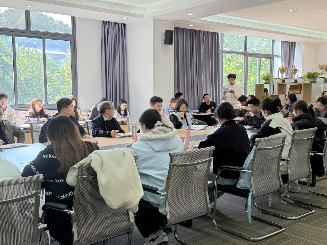 会议开始,尹元福副经理率先介绍了与会教师代表,并鼓励各班级学习委员围绕实际教学情况积极反馈。在交流环节中,各班学习委员依次发言,纷纷表达了对教师的教学态度与课堂效果的认可,同时,同学们也结合具体课程提出了一系列建议,有的同学指出《跨境电子商务》课程的理论讲授与实训环节衔接不够紧密,需要进一步增强二者的有机融合;另有同学反映《计量经济学》课程理论模型较为抽象,学习难度较大,希望教师适当放慢讲解节奏,并增加配套习题的讲解与练习。