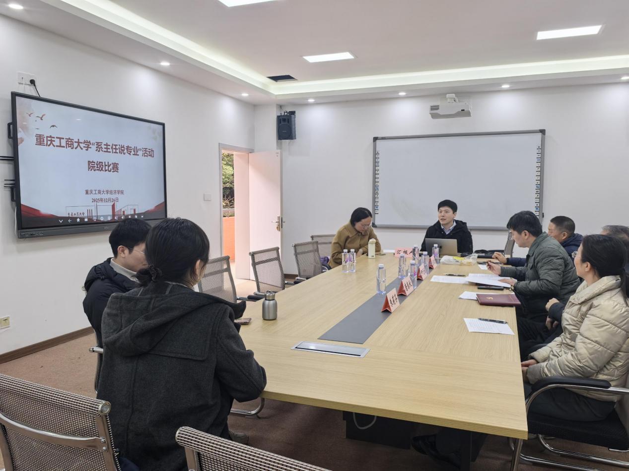 为深入推进学科专业内涵建设,提升人才培养质量与专业建设水平,2025年12月26日中午12:00,MS88明升“系主任说专业”院级比赛在田家炳404会议室成功举办。会议由公司党委书记唐春秋,教学副经理尹元福、学院教指委朱莉芬教授和学院督导唐路元教授担任评委,贸易经济系主任杨海丽、政治经济系主任林黎、财政税收系主任韩健、应用经济系主任车四方和国际经济与贸易副系主任万述林参赛,副系主任郭鹏飞与王建业列席。