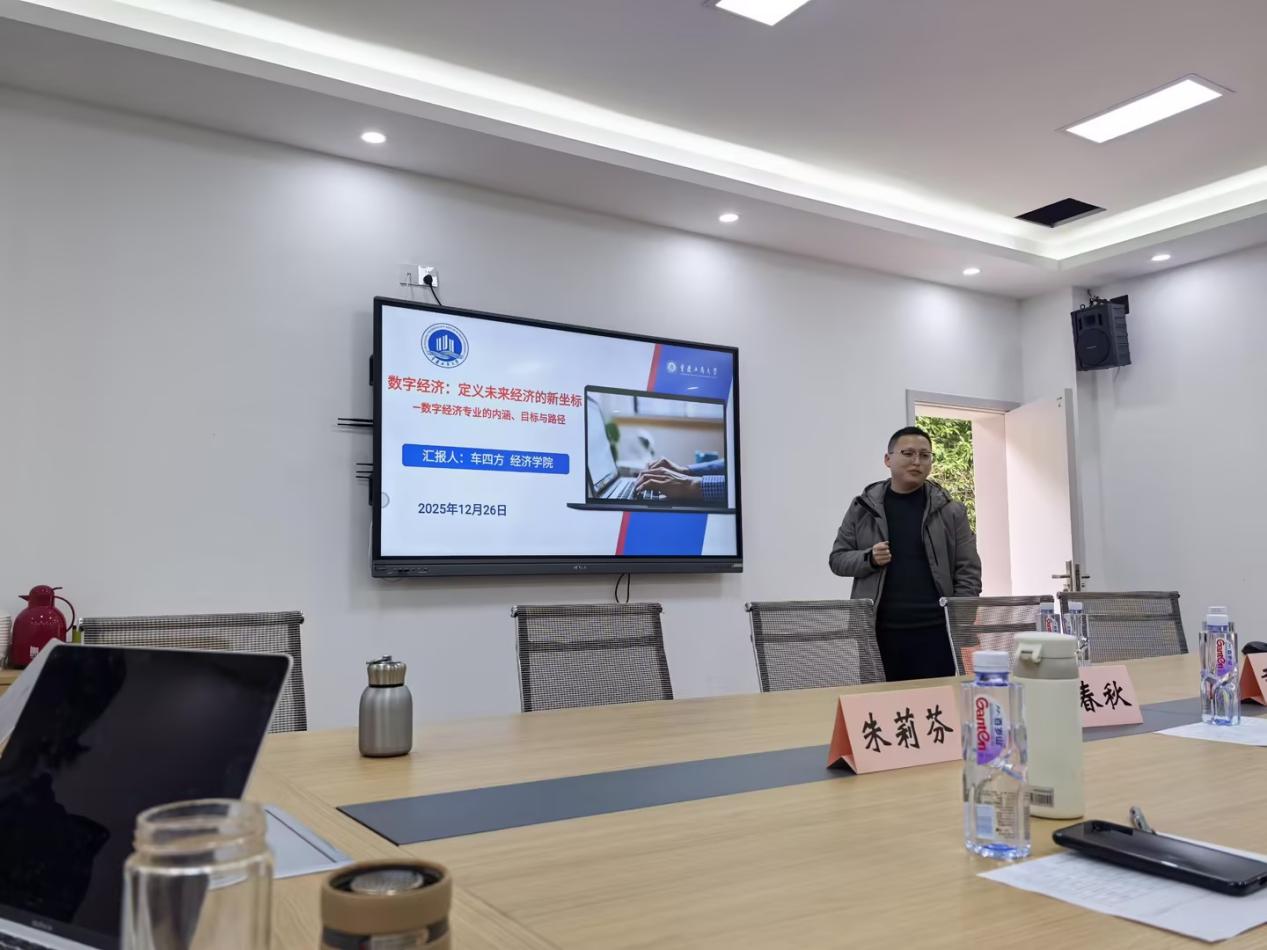 应用经济系主任车四方以“数字经济:定义未来经济的新坐标”为主题汇报,阐释数字经济专业核心内涵,明确培养数字素养与技术应用能力兼具的复合型人才目标,梳理融合课程体系、校企协同平台建设等关键实现路径。
