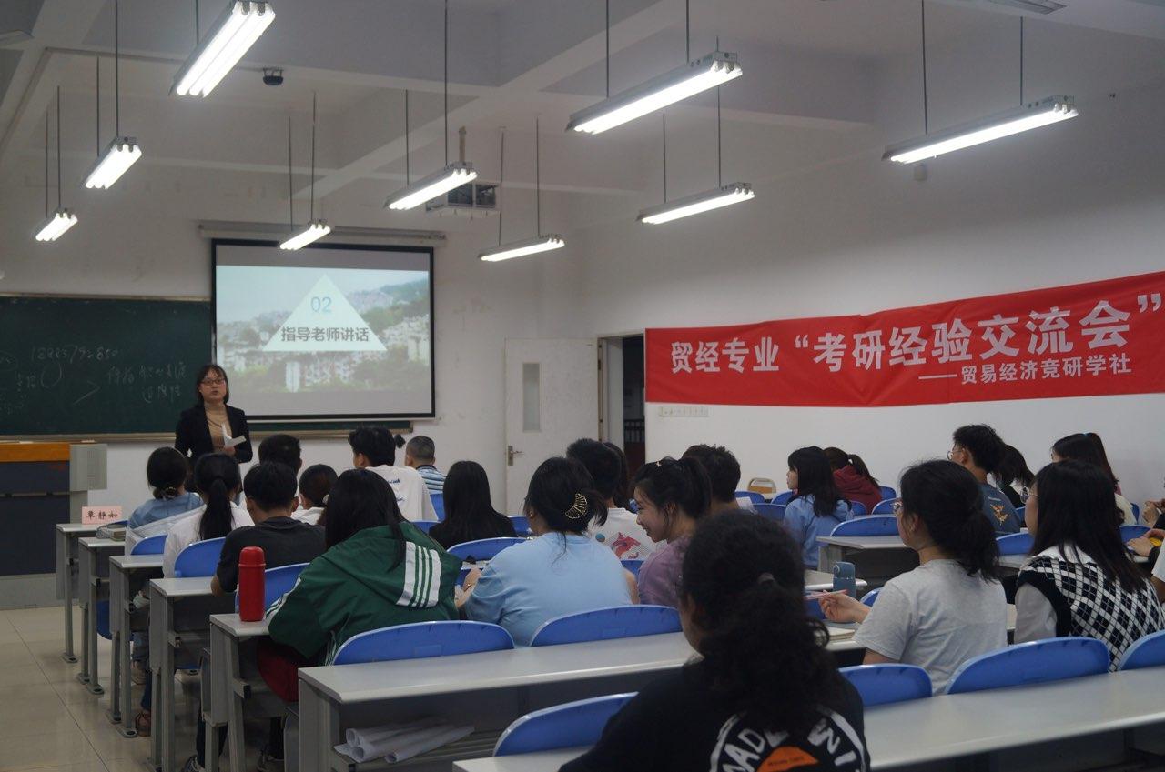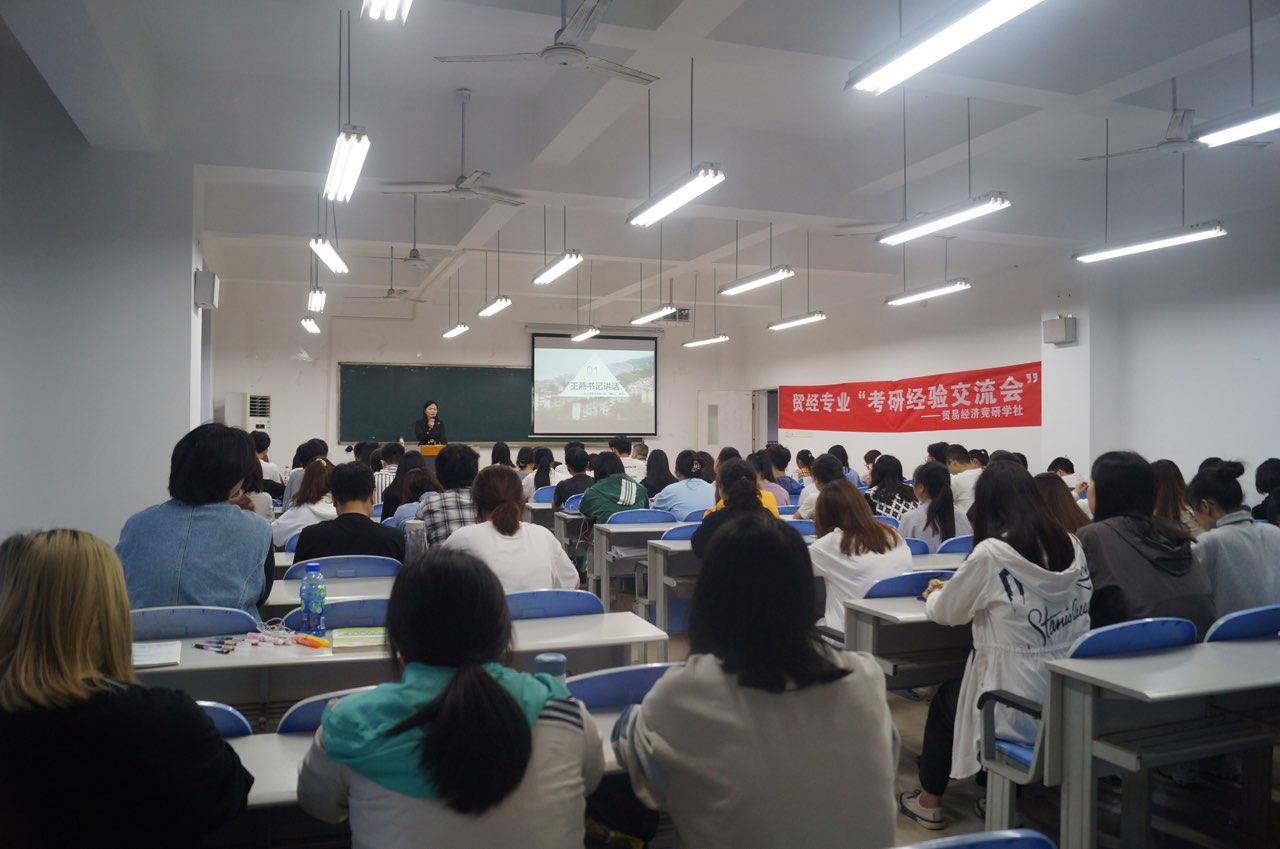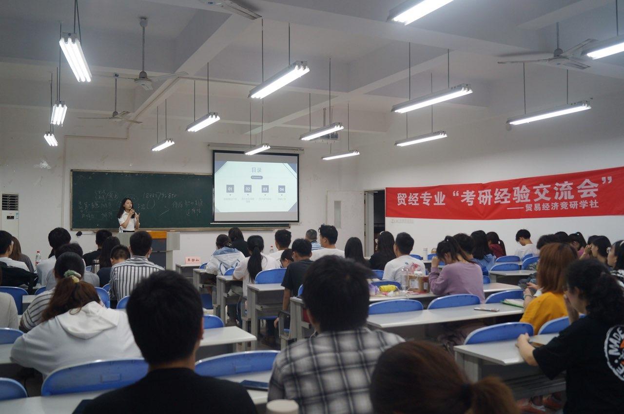 2021年6月3日晚19:00,贸易经济竞研学社在田家炳书院306教室组织并举办了MS88明升贸易经济专业2021年“考研经验交流会”。贸易经济专业18、19以及部分20级对考研、就业实习、出国留学有兴趣的同学,共计120余人参加了此次交流会。