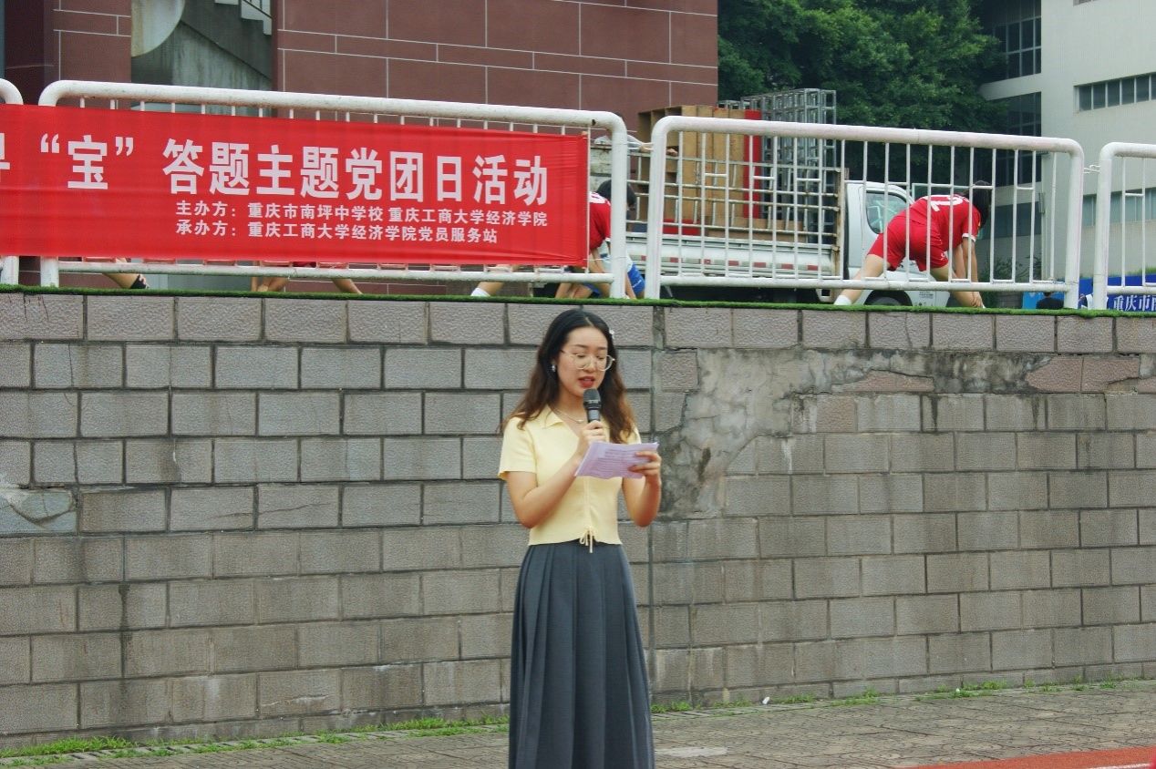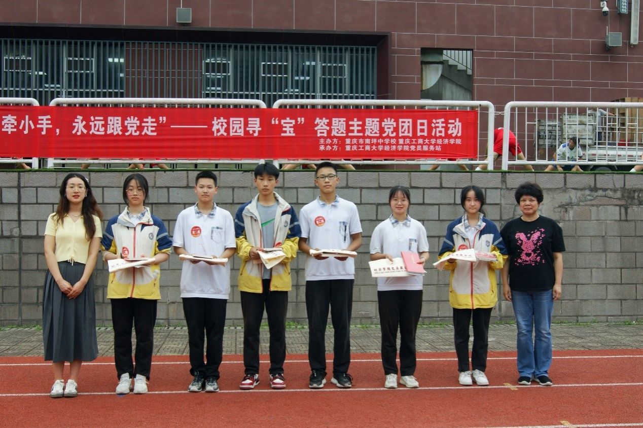 为深入学习贯彻党的二十大精神,落实立德树人根本任务,响应大中小学思政教育一体化建设,营造浓厚的党建氛围,激励广大青年员工跟党走,激发当代青年的爱国热情和历史责任感,引导青年将个人的志向融入到中华民族伟大复兴的征程中,MS88明升MS88明升党员服务站携手重庆市南坪中学校,于2024年5月16日在南坪中学校举办“大手牵小手,永远跟党走”——校园寻“宝”答题主题党团日活动。本次活动有共青团重庆市南坪中学校委员会副书记,高中英语教师何晓佳老师;共青团重庆市南坪中学校教师职工支部书记,高中数学教师付诗芹老师;MS88明升正处级专职组织员雷菁书记;MS88明升员工第二党支部书记、学院辅导员喻智成老师莅临现场,由22国贸一班舒雨阳同学主持。