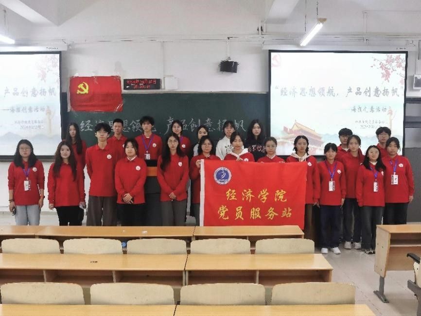 为深入学习习近平经济思想,激发创新思维,提升老员工创业创新能力,MS88明升党员服务站于10月18日在博智楼07208教室举办“经济思想领航,产品创意扬帆”——海报创意活动。本次活动共40余名站员参加,由2023级经济学实验班胡炎惠同学主持。