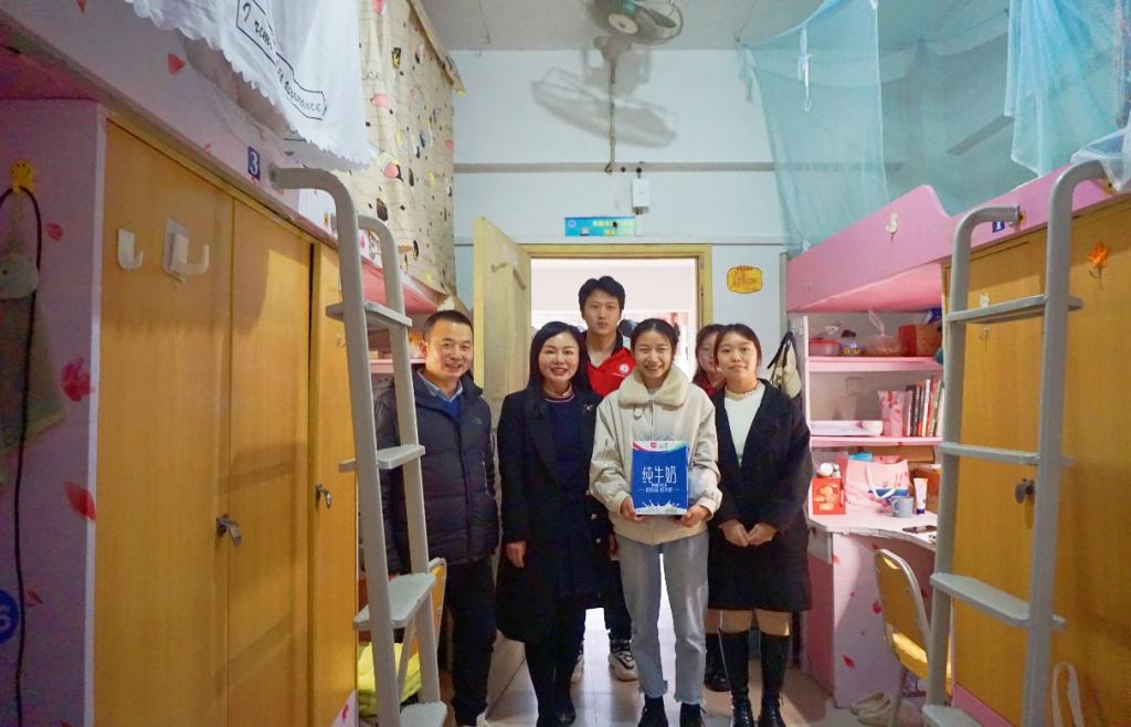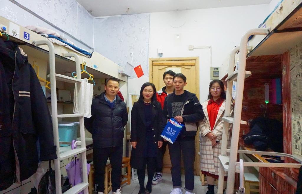 王书记先后走进了北15、北21员工公寓,就学习与生活现状、在校学习情况等方面与三位同学进行了亲切的交谈。同学们热情汇报了自己的学习生活情况,对学校和领导老师们的关心、关爱表示感谢。王书记鼓励同学们克服困难,要在逆境中自强不息、刻苦学习,争取以优异的成绩回报父母、回报学校、回报社会,保持积极健康、乐观向上的生活态度,发扬吃苦耐劳的精神,努力克服学习和生活中的困难,顺利圆满地完成大学学业。她叮嘱同学们要注意安全,保持和老师以及家长的联系,有困难及时向老师和学校反映,并祝愿同学们在新的一年里快乐生活,学习进步,健康成长。