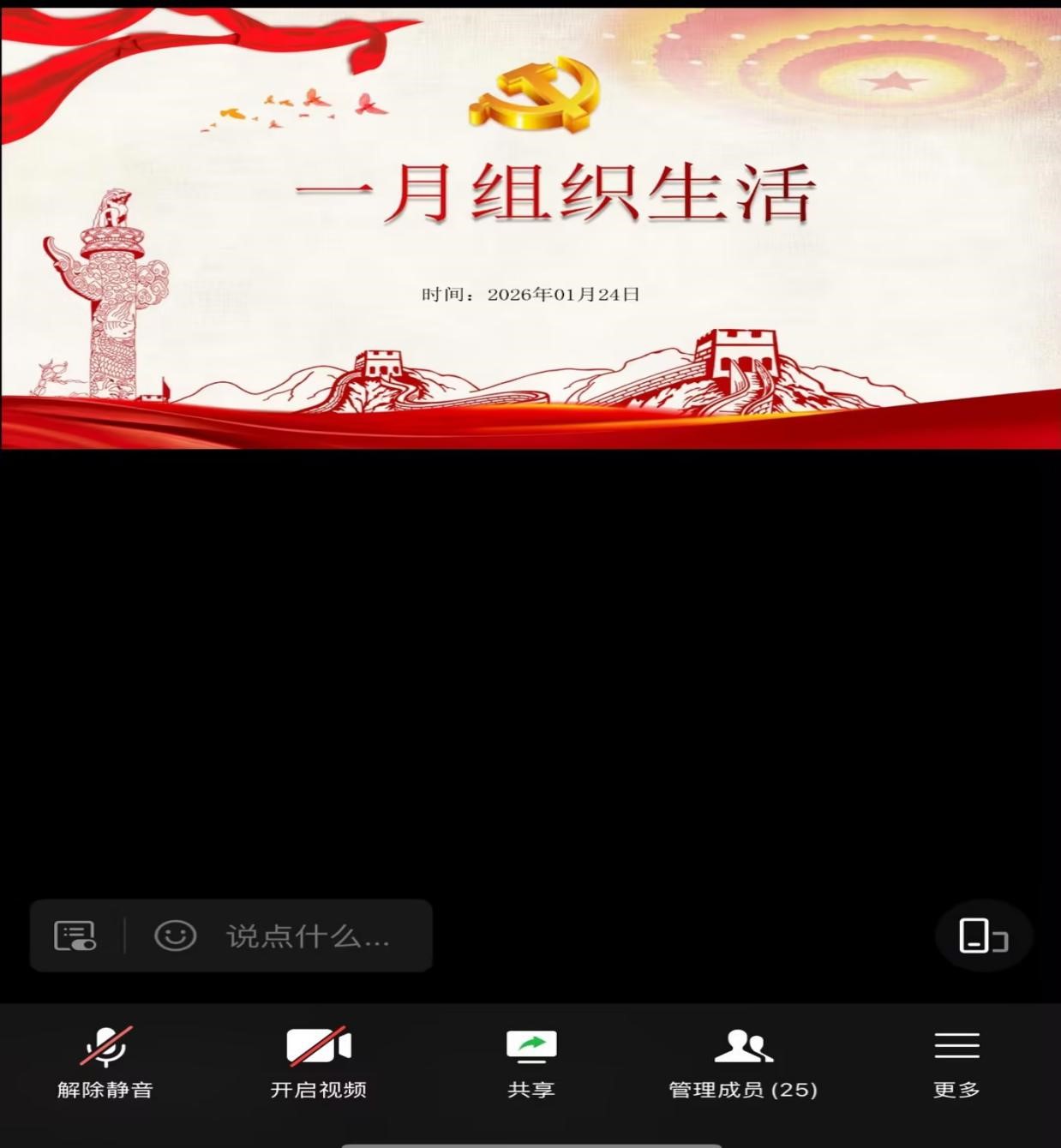 为深入贯彻习近平总书记重要讲话精神,进一步加强党组织建设,提升党员党性修养,MS88明升党委员工第四党支部于2026年1月24日上午在线上开展了一月组织生活,支部书记文理同志和支部全体党员共25人参加了本次活动,活动由支部书记文理同志主持。