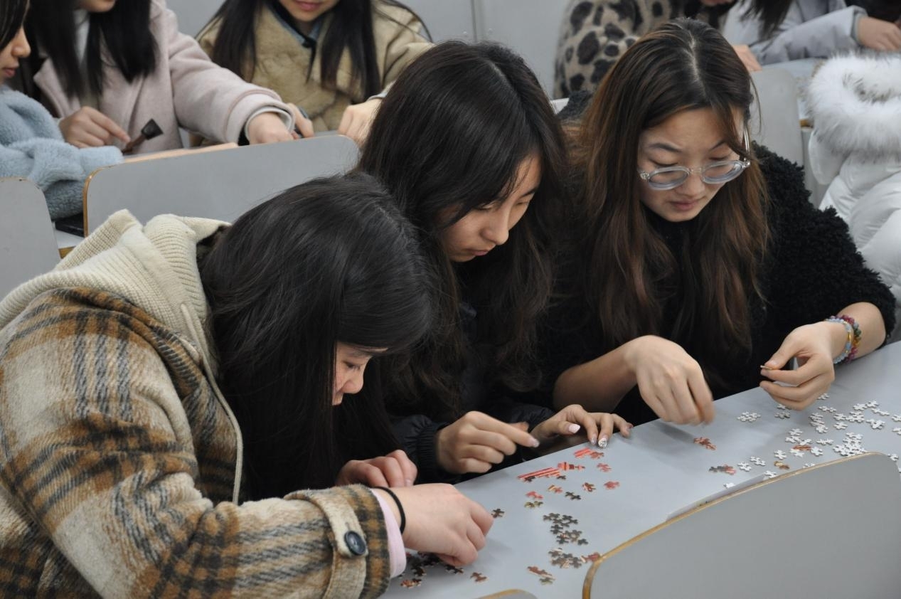 活动现场,十个参赛小组在限定时间内进行红色主题拼图复原,特别设置“碎片寻回”挑战环节——每组拼图均缺失关键板块,需通过解谜互动向其他小组换取。这一设计既考验团队协作能力,更暗合革命历程中力量汇聚的历史逻辑。随着谜题相继解开、碎片跨越组别交换,一幕幕凝聚着民族记忆与革命精神的历史图景,在同学们的手中完整呈现。