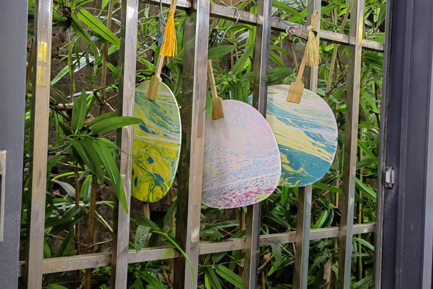 活动开始,心理工作站工作人员向同学们介绍了漆扇的概念、文化背景、种类等,带领大家了解漆扇作为我国的非遗大漆“漂漆”技法衍生物具有其独特的艺术价值和历史文化底蕴,并采用视频和图文方式为同学们具体介绍了漆扇制作的基本步骤和注意事项。在制作环节中,同学们以6人为一组,在选材、调色、上漆等各个步骤充分发挥想象力和创造力以水为纸、以漆为画,摇曳出属于自己独一无二的纹路,绘制出一把把独具特色的漆扇。活动现场气氛热烈而融洽,同学相互交流心得、分享创作的喜悦与收获。