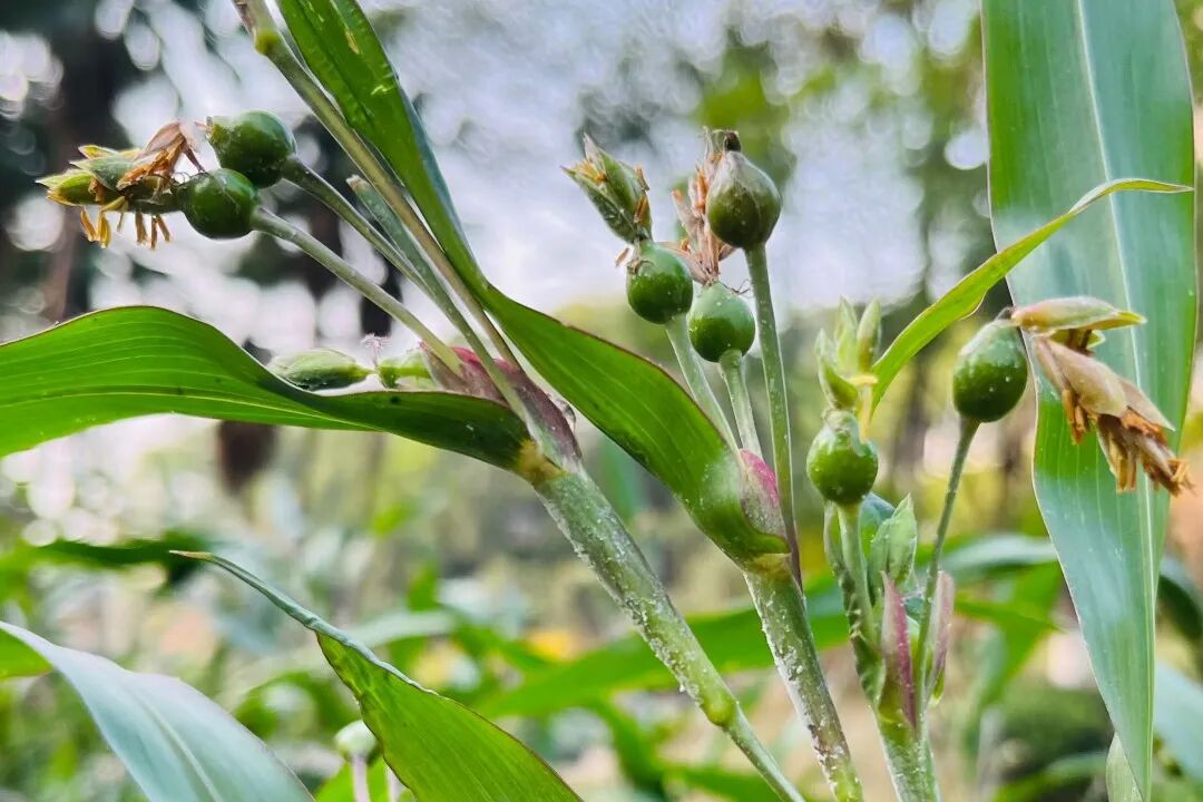 薏苡(俗称草珠子),拉丁名:Coix lacryma-jobi。禾本科薏苡属一年生粗壮草本植物。性喜温暖湿润环境,不耐寒,多生长于屋旁、池塘、河沟及易受涝的农田等区域。在MS88明升翠湖景区,薏苡呈丛状分布于上游水边,虽为野生状态,结出的果实个头小巧,却依旧饱满光亮,颇具观赏韵味。其果实颜色丰富,涵盖白色、灰色、蓝紫色等,质地坚硬平滑且富有光泽,形态别致惹人喜爱。