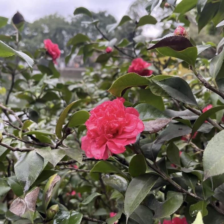 茶花的美与韵,藏在古今文人的笔墨之中。宋代苏轼笔下的茶花,落蕊仍留蜜露香,尽显清雅;陆游则盛赞其“偏耐久”的品性,在桃李飘零后依旧绽红枝;明代归有光赋予茶花“岁寒无后凋”的坚韧,将其拟作三公,颂其端庄风骨;清代吴伟业以云锦、丹砂喻茶花之艳,笔墨间尽是惊艳;郭沫若则描绘出茶花如彤云啸傲的雄姿,衬得唐梅宋柏更具风姿,诸多诗作,让茶花的文化底蕴愈发深厚。